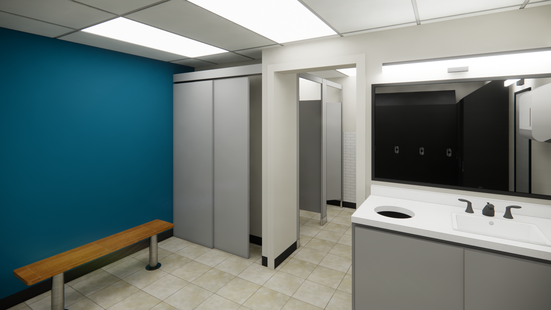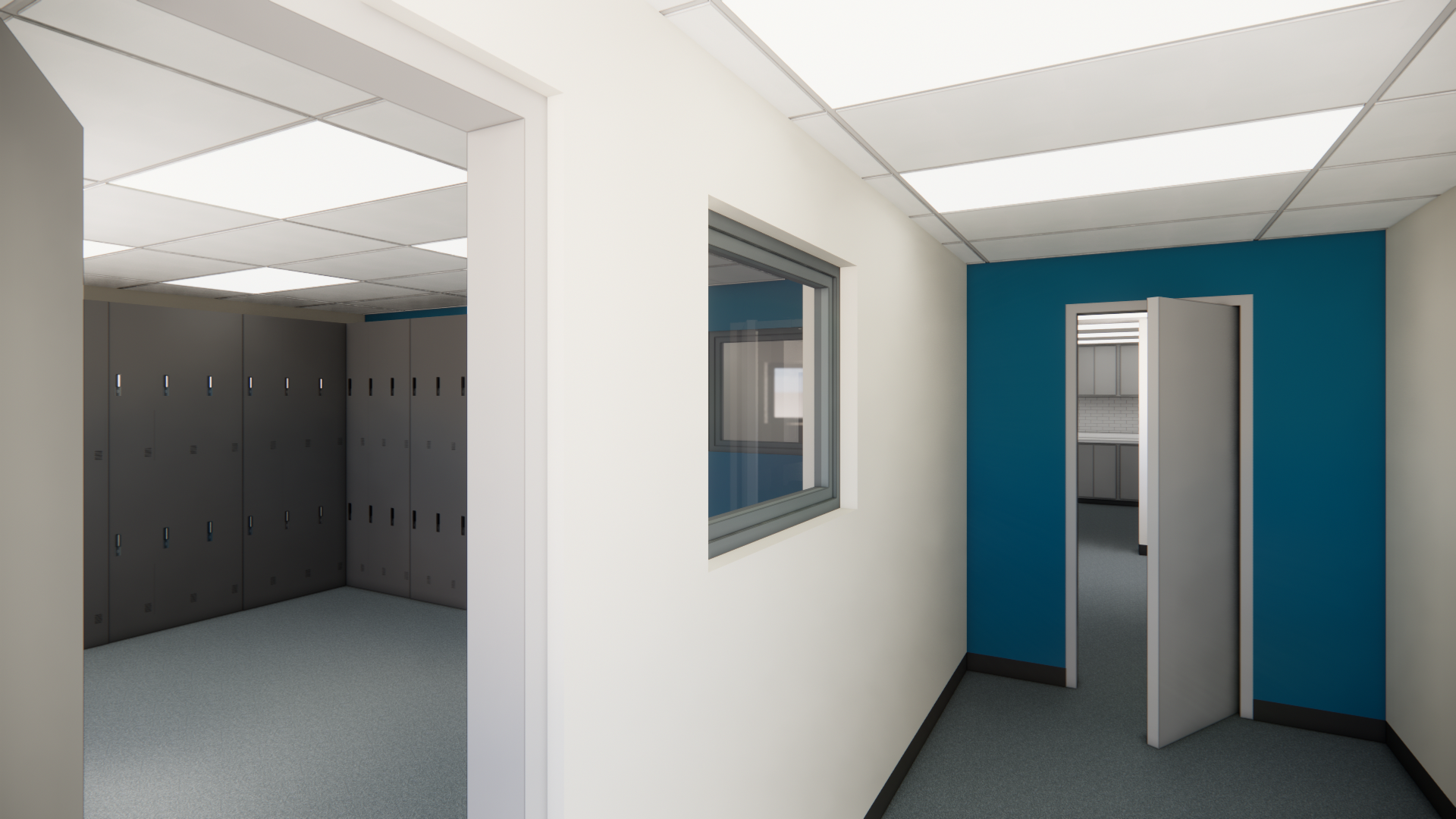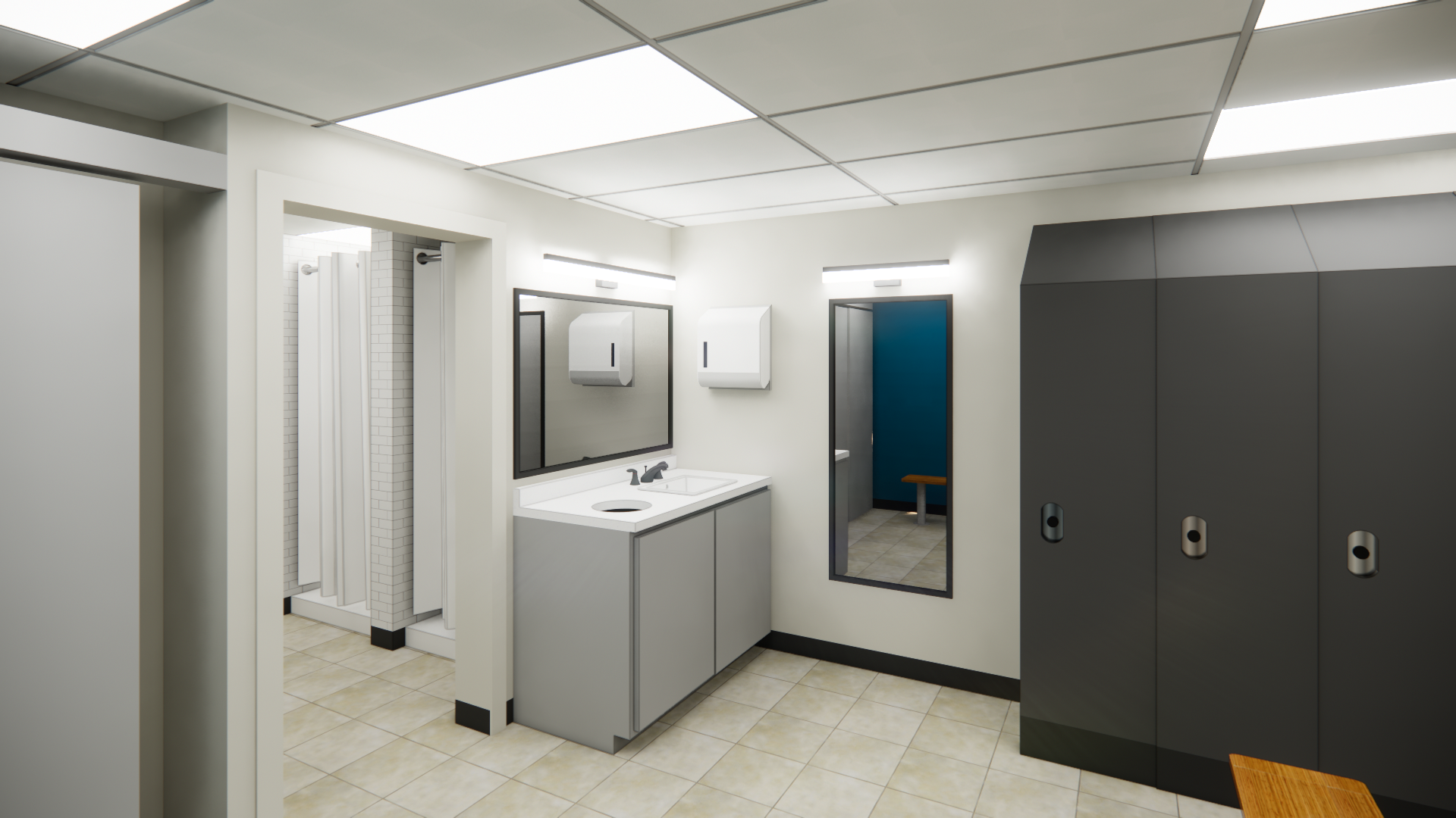 For this locker room and break room refresh, we were tasked with developing a new kitchenette layout as well as updating the finishes throughout the space. After developing this design, we worked closely with the contractor to compile pricing take offs for the proposed finishes to achieve a design within the client's budget. Helping clients envision the potential for their existing layout by using renders is an incredibly useful tool that we often implement.