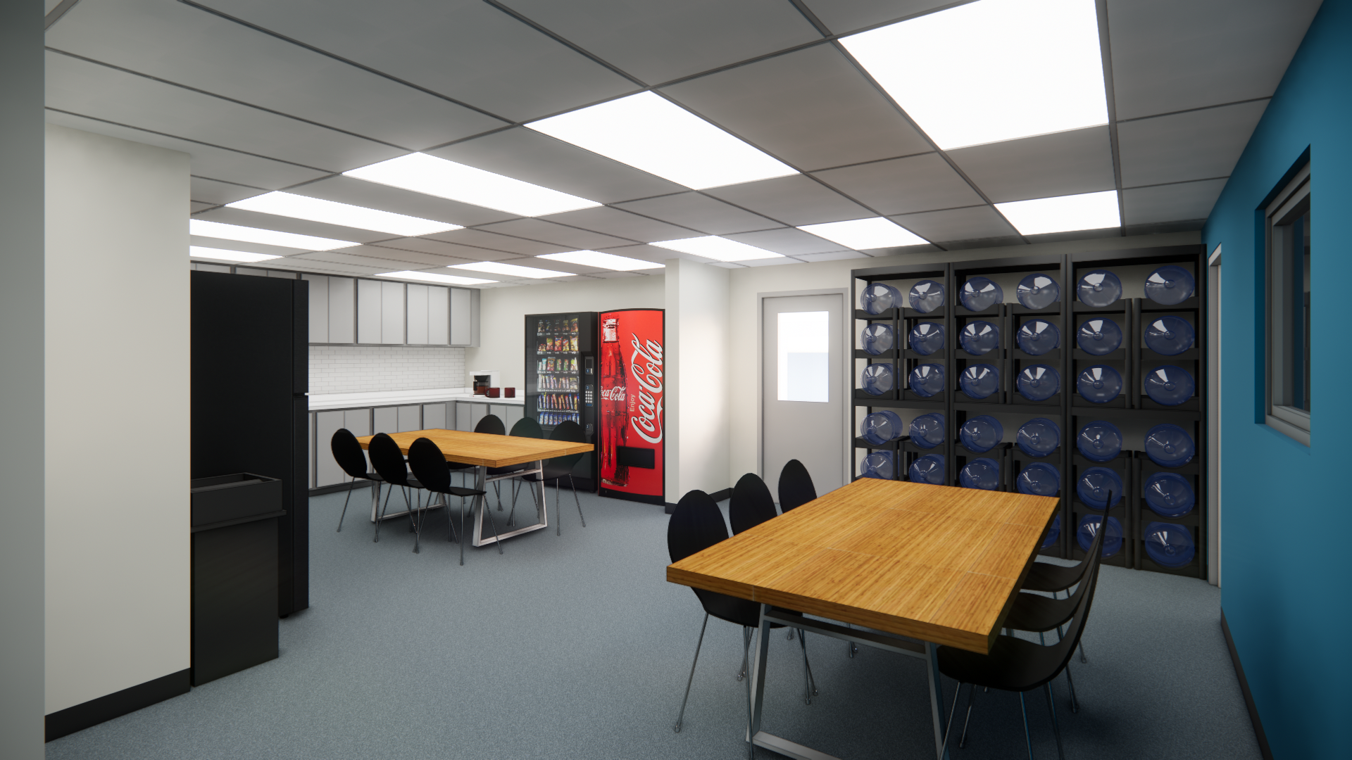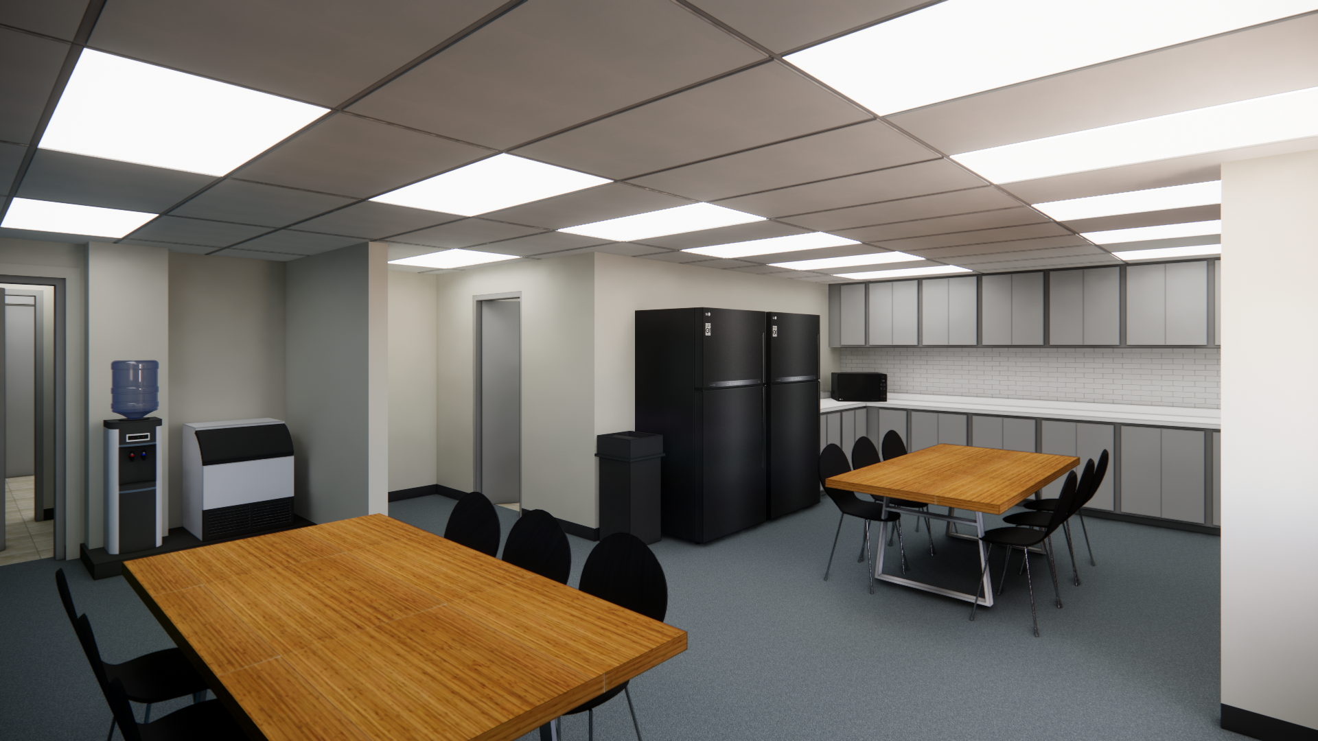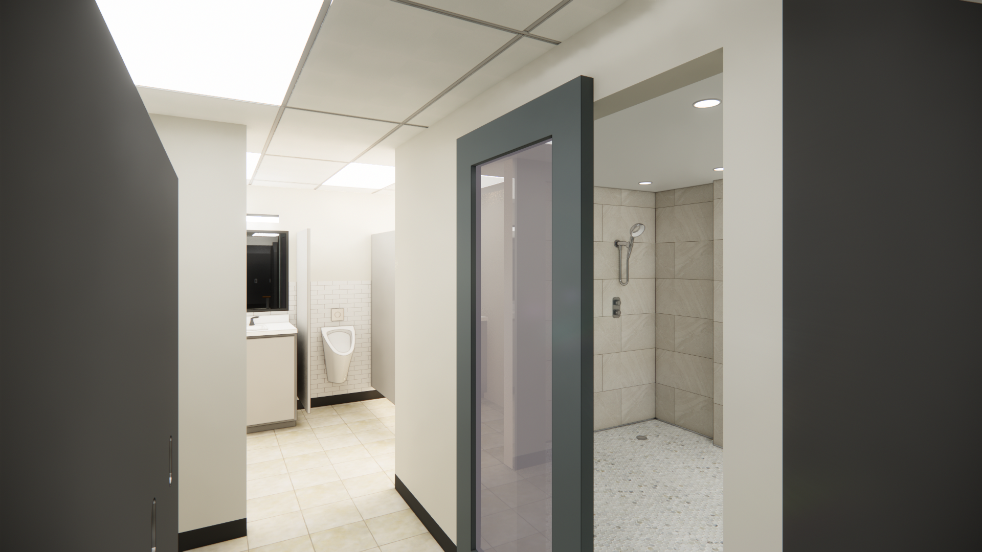 For this locker room and break room refresh, we were tasked with developing a new kitchenette layout as well as updating the finishes throughout the space. After developing this design, we worked closely with the contractor to compile pricing take offs for the proposed finishes to achieve a design within the client's budget. Helping clients envision the potential for their existing layout by using renders is an incredibly useful tool that we often implement.