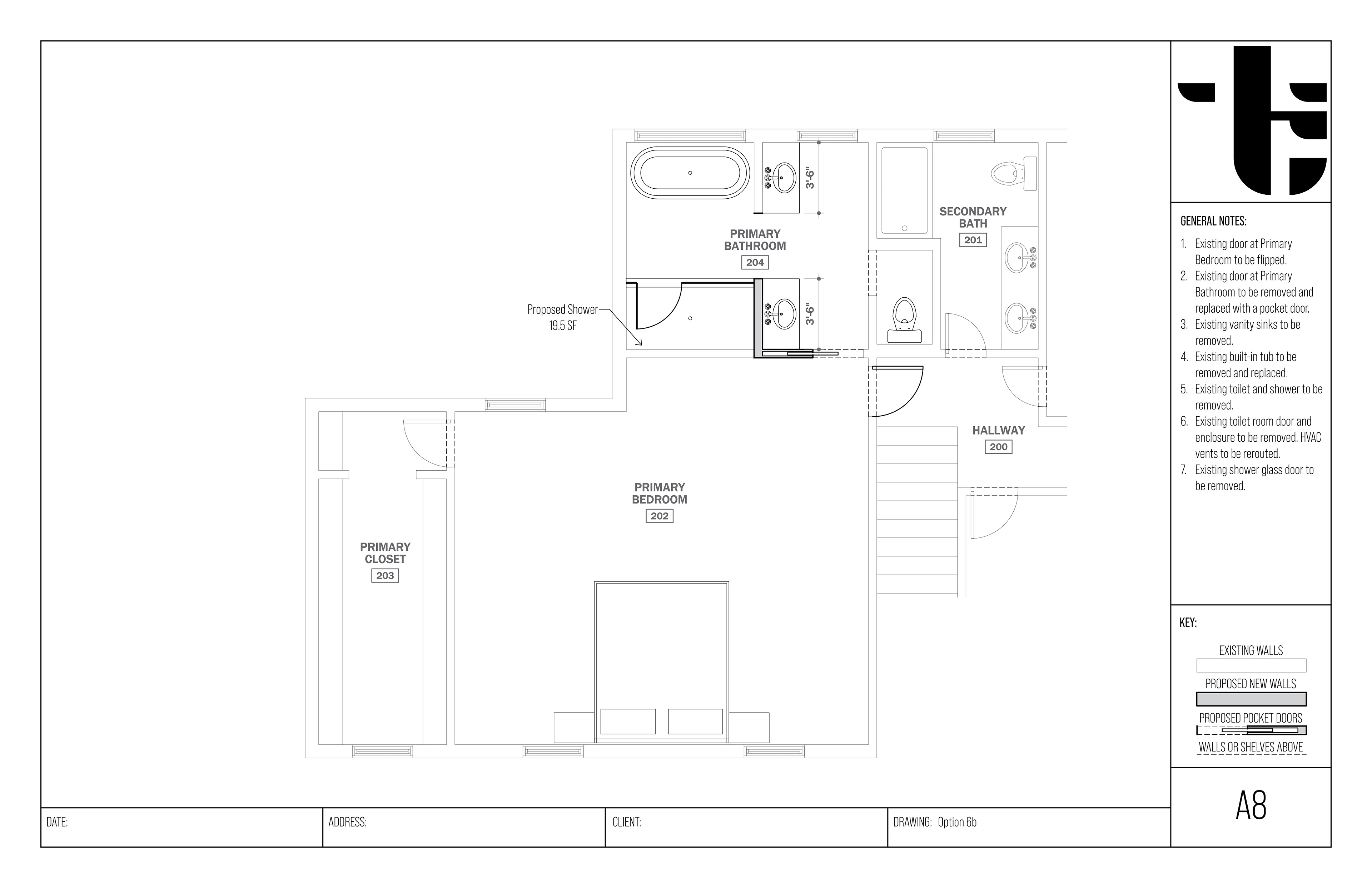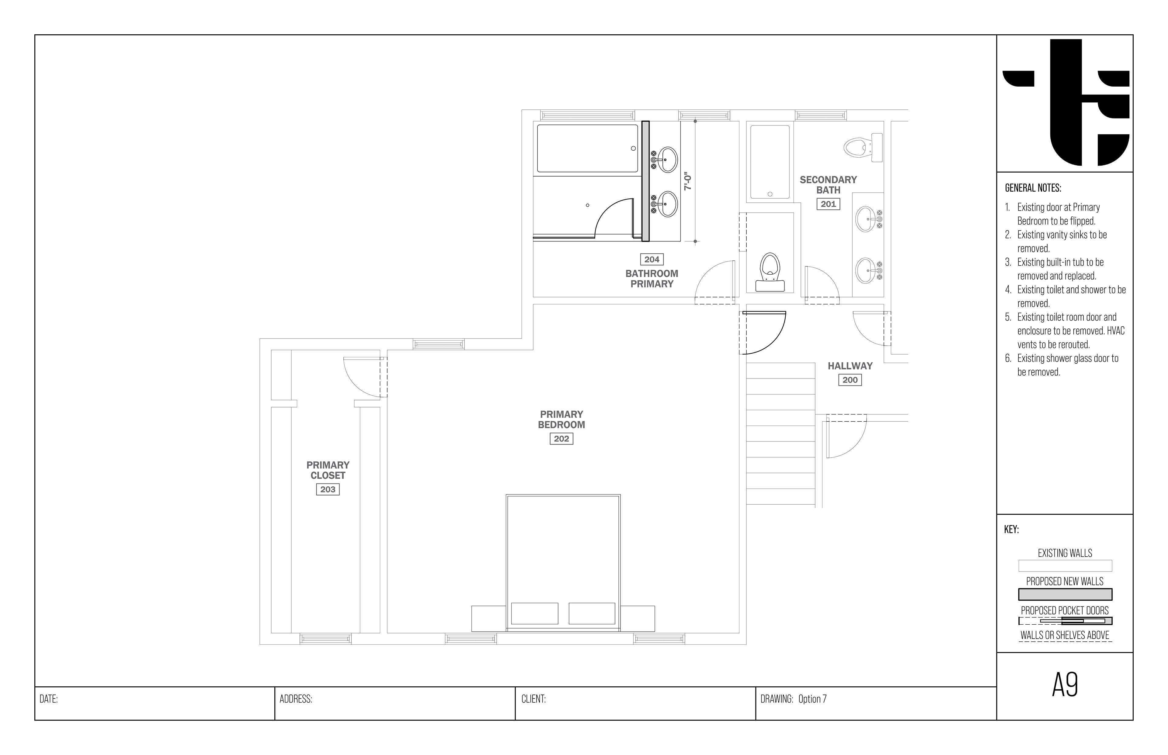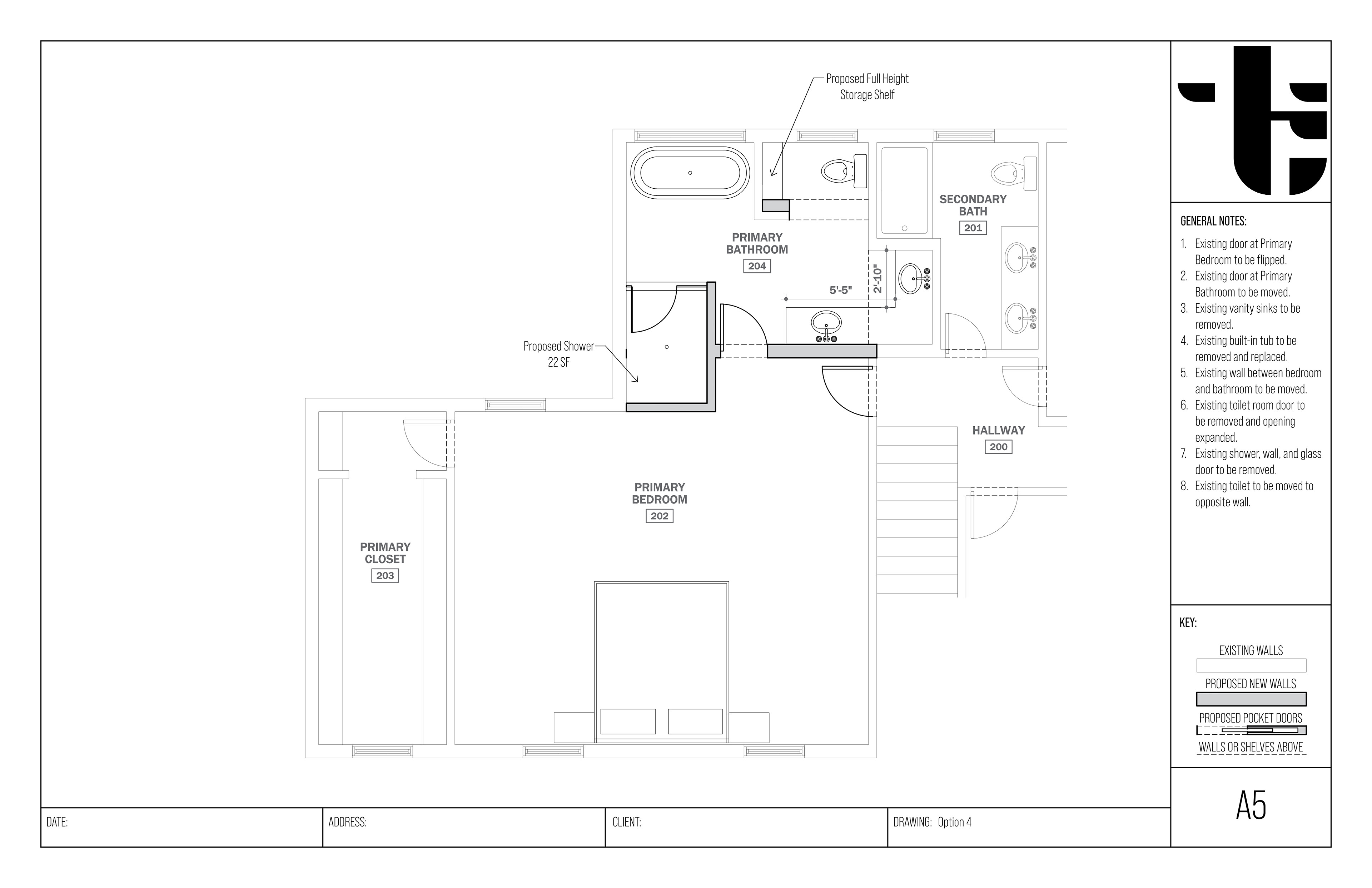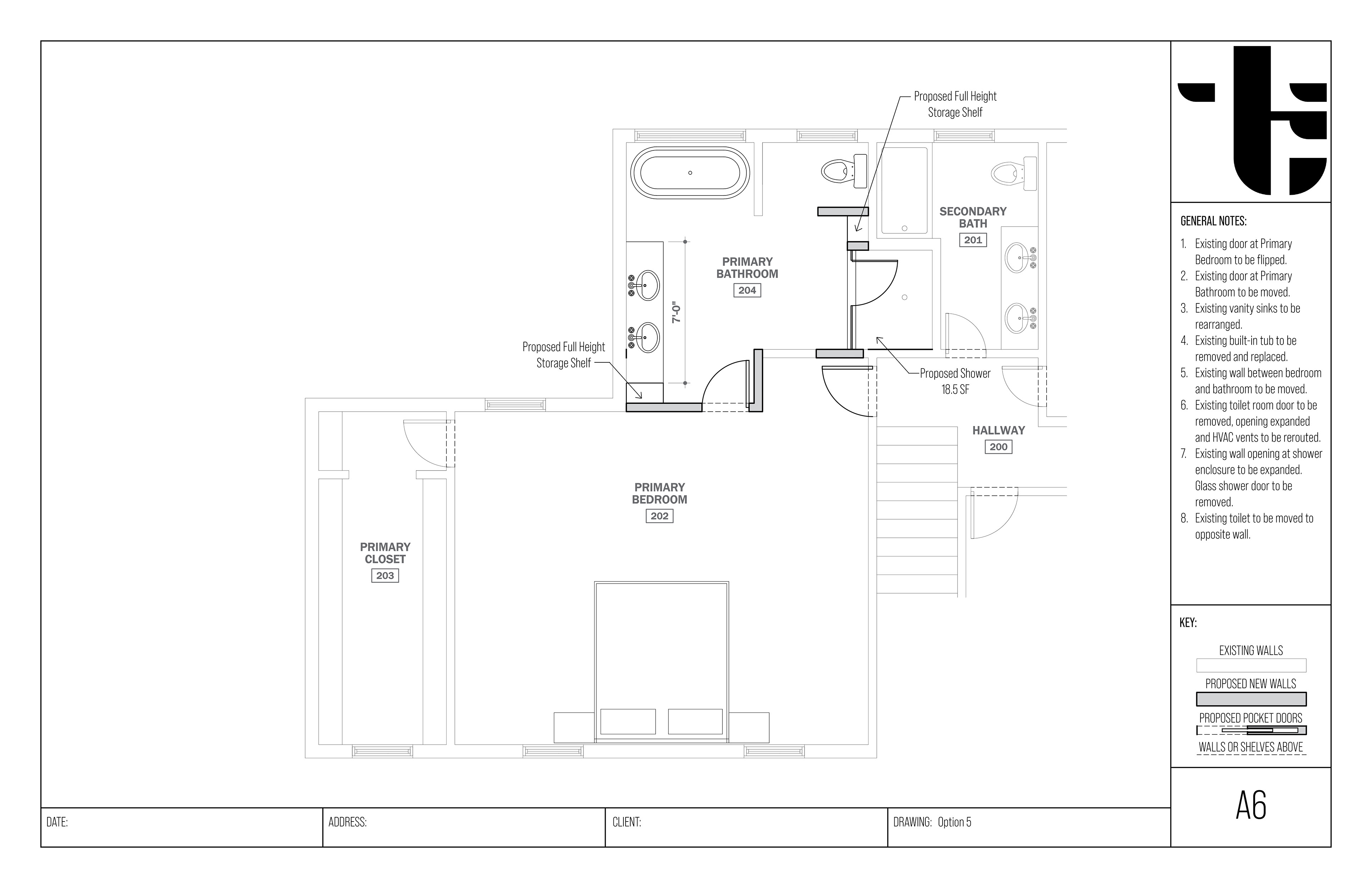 Iteration with our clients is an integral component to any successful design. On this project, we worked collaboratively through different creative solutions for the floor plan to achieve the client's vision. We were able to study the existing primary bed and bath suite conditions to incorporate a potential at home office and a more efficient layout.